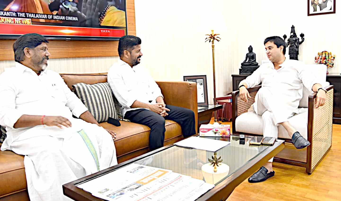 چیف منسٹر ریونت ریڈی کی مرکزی وزیر جیوتر آدتیہ سندھیا سے نمائندگی حیدرآباد۔23۔اگسٹ(سیاست نیوز) چیف منسٹر تلنگانہ اے ریونت ریڈی نے ڈپٹی چیف منسٹر و ریاستی وزیر فینانس مسٹر ملو