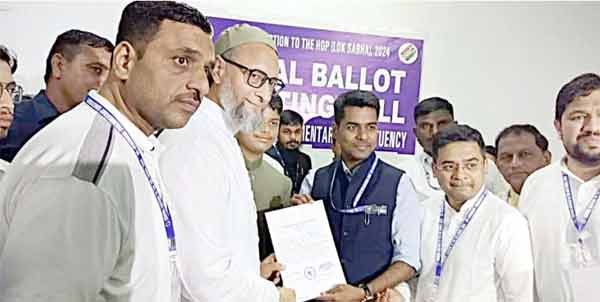 3 لاکھ 38 ہزار سے زائد ووٹوں کی اکثریت ۔ صدر مجلس کی اکثریت میں مسلسل اضافہحیدرآباد 4 جون (سیاست نیوز) رکن پارلیمنٹ حیدرآباد وصدر مجلس اتحاد المسلمین بیرسٹر اسدالدین