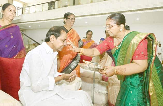 بہنوں نے چیف منسٹر کو راکھی باندھی اور آشیرواد دیاحیدرآباد ۔31۔ اگست (سیاست نیوز) چیف منسٹر کے سی آر کی سرکاری رہائش گاہ پرگتی بھون میں رکھشا بندھن تہوار منایا