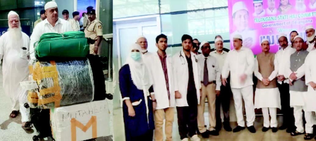 وزیر داخلہ جناب محمد محمود علی ، جناب محمد سلیم صدر نشین حج کمیٹی نے ائرپورٹ پر استقبال کیاحیدرآباد ۔ 15 جولائی(سیاست نیوز ) تلنگا نہ کے حجاج کرام کاپہلا