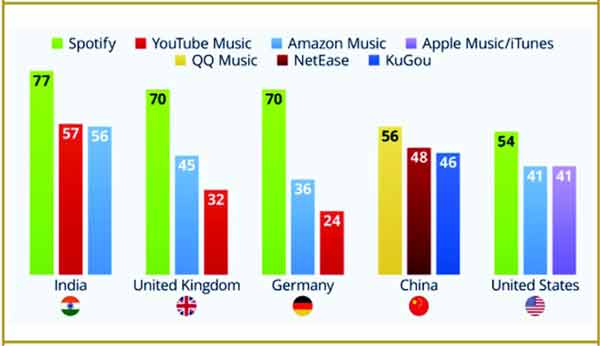 77 فیصد کا تعلق ہندوستان سے ، برطانیہ اور جرمنی دوسرے نمبر پر، سبسکرائبرس کی تعداد 290 ملینحیدرآباد ۔30 ۔ مارچ (سیاست نیوز) میوزک اور دیگر تفریحی سرگرمیوں کیلئے اسپوٹیفائی