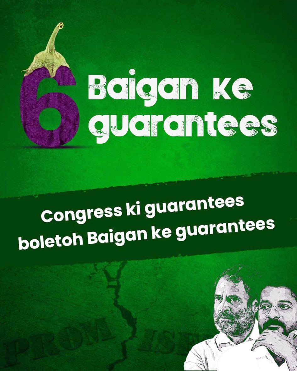 کانگریس کی ضمانتوں پر بی آر ایس کا طنز و طعنہ، سوشل میڈیا پر فقرے حیدرآباد۔21۔ستمبر(سیاست نیوز) تلنگانہ کی سیاست میں ایک مرتبہ پھر سے ’ بیگن ‘ نے مقام