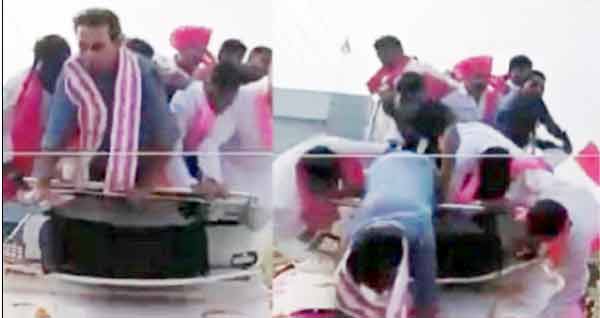 امیدوار جیون ریڈی اور رکن راجیہ سبھا سریش ریڈی تشہیری ویان سے نیچے گر پڑے ، جلسہ ملتویحیدرآباد ۔ 9 ۔ نومبر : ( سیاست نیوز ) : بی آر