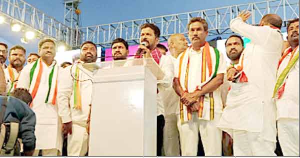 6 ضمانتوں پر ڈسمبر سے عمل آوری : ریونت ریڈیشمس آباد ۔9۔نومبر (سیاست نیوز) راجندر نگر اسمبلی حلقہ میں شمس آباد کے موضع تونڈ پلی میں کانگریس کے جلسہ عام