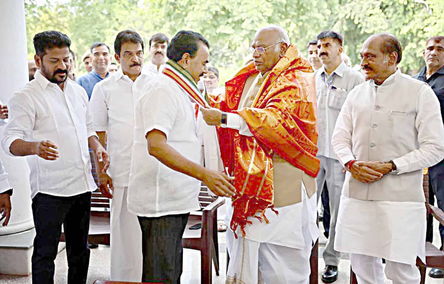 نئی دہلی میں ملکارجن کھرگے نے استقبال کیا، کے سی وینو گوپال، ریونت ریڈی اور مانک راؤ ٹھاکرے کی شرکت حیدرآباد۔/3اگسٹ، ( سیاست نیوز) سابق وزیر جوپلی کرشنا راؤ کے