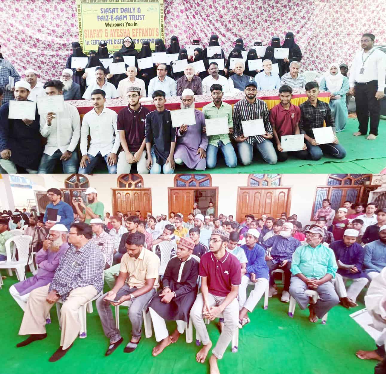 مسجد خزانہ آب دودھ باولی میں SIAFT اور عائشہ آفندی اسکیل سنٹرس کی تقریب تقسیم اسنادافتخار حسین ، ظہیر الدین علی خاں ، ڈاکٹر مخدوم محی الدین اور دیگر کا