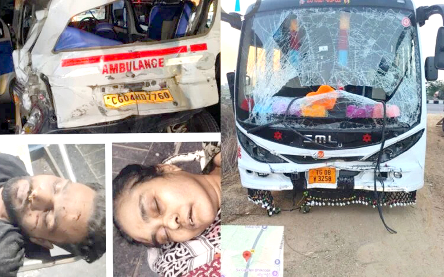 حیدرآباد ۔ 11 ۔ اپریل : ( سیاست نیوز ) : کاماریڈی ضلع کے بکنور منڈل کے رامیشور پلی میں قومی شاہراہ پر ایمبولنس اور خانگی ٹراویلس بس کے درمیان