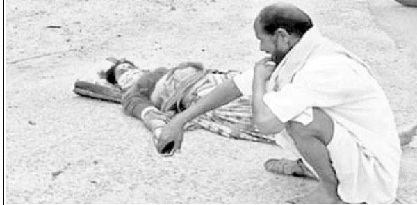 بے بس شوہر اشکبار ۔ سنگاریڈی کے ہتھنورہ منڈل میں واقعہحیدرآباد : بخار میں مبتلا خاتون اپنے شوہر کے ساتھ آٹو میں ہاسپٹل جارہی تھی کہ راستے میں ہی اس