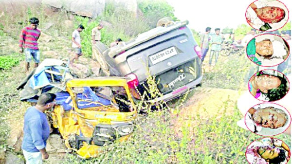 بودھن 18 نومبر ( سیاست نیوز ) حلقہ اسمبلی بودھن کے موضع جانکم پیٹ میں ایک کار کے الٹ کر آٹو رکشا پر جاگرنے کے بھیانک حادثہ میں پانچ افراد