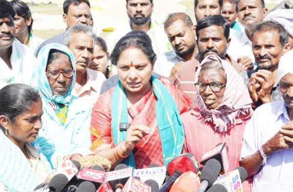 طوفانی بارش کے سبب تیار فصلیںتباہ‘ صدرتلنگانہ جاگروتی کویتاکا کریم نگر دورہ‘متاثرین سے ملاقاتکریم نگر۔31اکتوبر(سیاست ڈسٹرکٹ نیوز)صدر تلنگانہ جاگروتی کلواکنٹلہ کویتا نے کریم نگر ضلع کے تماپور منڈل کے مکتاپلی