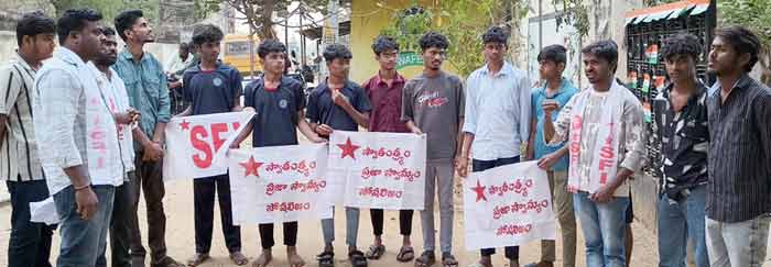 سنگاریڈی میں سرکاری کالج ہاسٹل کے روبرو ایس ایف آئی کا احتجاجی مظاہرہسنگا ریڈی۔ 3 فروری (سیاست ڈسٹرکٹ نیوز )سنگاریڈی میں اسٹوڈنٹس فیڈریشن آف انڈیا (ایس ایف آئی) کی جانب