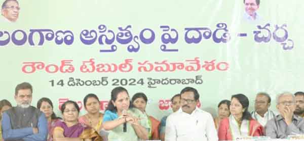 تلنگانہ عوام کے احترام کا وعدہ فراموش، تلنگانہ جاگروتی کی گول میز کانفرنس سے خطابنظام آباد: 15/ڈسمبر (سیاست ڈسٹرکٹ نیوز)تلنگانہ کی ثقافت اور شناخت پر ہونے والے حملوں کی ہر