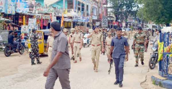 عادل آباد ۔ 6 ستمبر (سیاست ڈسٹرکٹ نیوز) ضلع عادل آباد کے پرامن ماحول کو برقرار رکھنے کی خاطر عادل آباد ایس پی غوث عالم نے بھاری پولیس جمعیت کے
