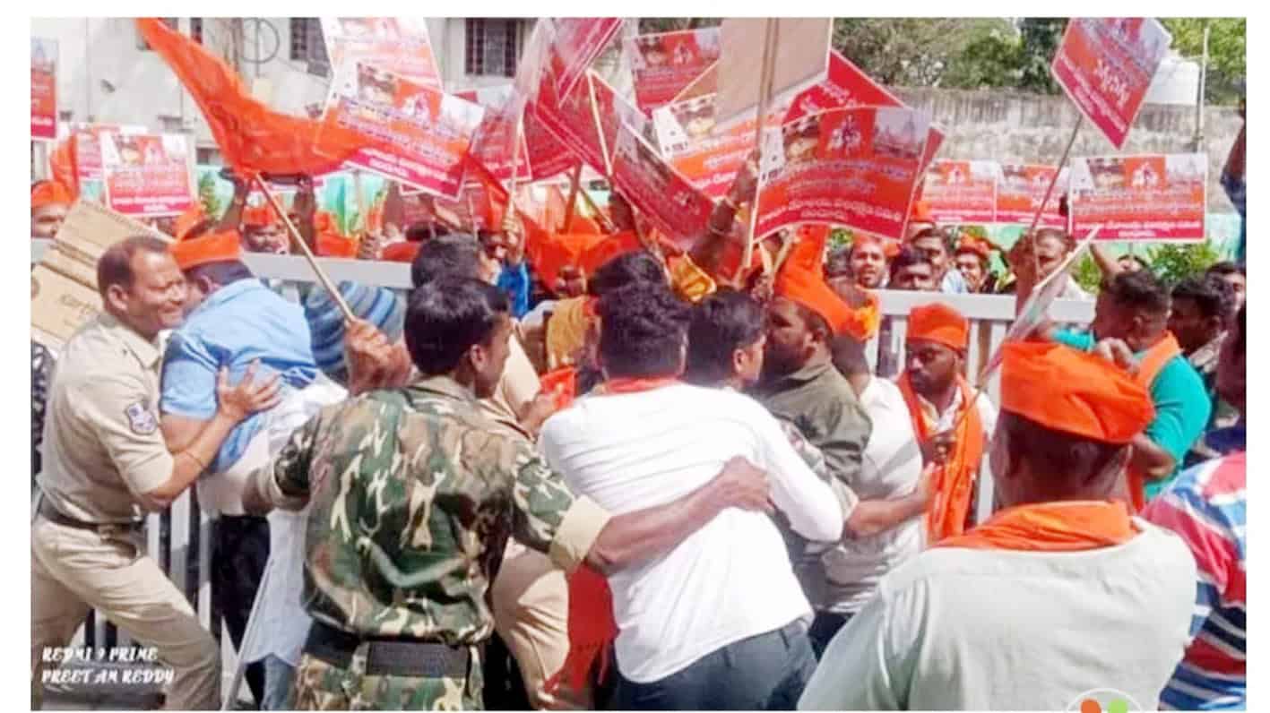 نظام آباد۔ 13 فبروری ۔ ( سیاست ڈسٹرکٹ نیوز ) شمبھو گڑھی کے اطراف و اکناف واقع دکانات برخواست کرنے کا مطالبہ کرتے ہوئے ہندو مندروں کی تحفظ کمیٹی کی