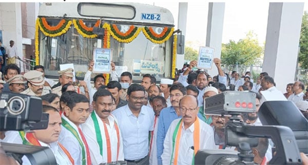 نظام آباد ضلع کلکٹر نے جھنڈی دکھائی اور تھوڑی دورتک سفر کیانظام آباد :9؍ ڈسمبر ( سیاست ڈسٹرکٹ نیوز)نو منتخب حکومت کے کانگریس پارٹی کے 6 گیارنٹی اسکیمات کے تحت