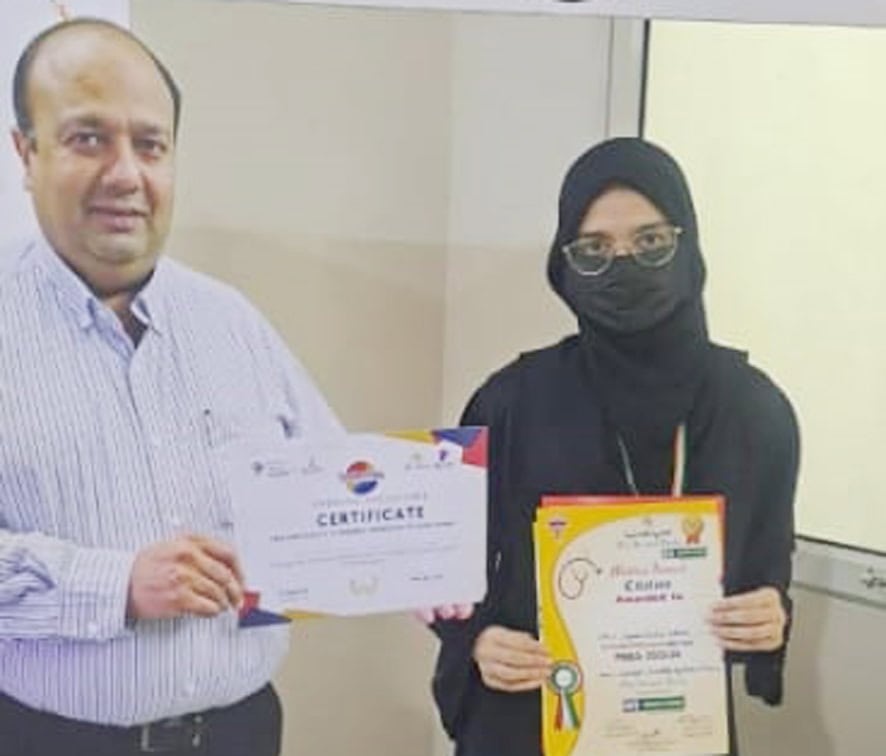 ایم بی بی ایس کی فری نشست ملنے پرسعیدہ خدیجہ کوایوارڈ