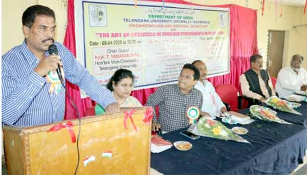 تلنگانہ یونیورسٹی شعبہ اردو کے زیر ا ہتمام ورکشاپ، پروفیسر ٹی یادگیری، ڈاکٹر محمد عبدالقوی اور دیگر دانشوروں کا خطاب نظام آباد۔ 10 اپریل (سیاست ڈسٹرکٹ نیوز) تلنگانہ یونیورسٹی پروفیسر