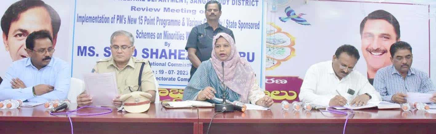 سنگاریڈی میں وزیر اعظم 15 نکاتی پروگرام پر عمل آوری کا جائزہ ، رکن قومی اقلیتی کمیشن کا خطاب سنگاریڈی 19 جولائی ( سیاست ڈسٹرکٹ نیوز) محترمہ سیدہ شہزادی رکن