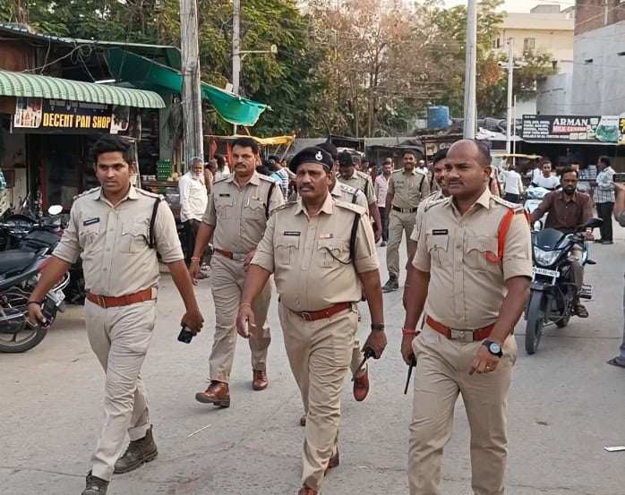 بھینسہ 29/مارچ (سیاست ڈسٹرکٹ نیوز) سری رام نومی شوبھا یاترا جلوس کے پیش نظر محکمہ پولیس جانب سے بھینسہ کی عوام میں اعتماد کی بحالی کے سے فلیگ مارچ نکالا