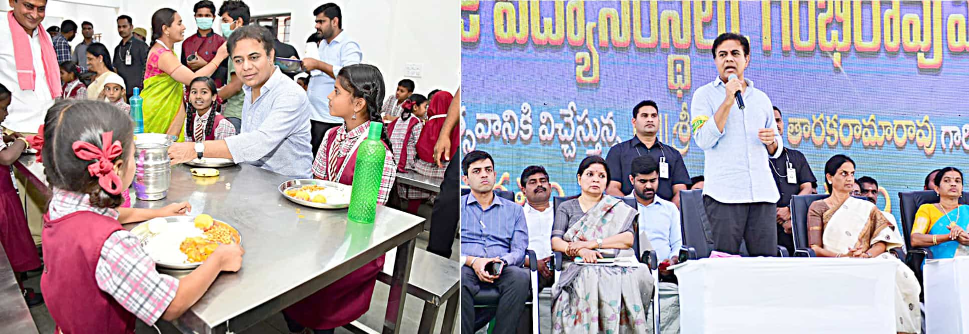معیاری سہولیات، ڈیجیٹل لائبریری، عصری ڈائننگ ہال۔ ہم نے وعدے پورے کر دکھائے : کے ٹی آر٭٭ریاست میںتعلیمی انقلاب کی طرف اہم اور عملی پیشرفت٭٭ اسکولی کیمپس کو پروفیسر جئے
