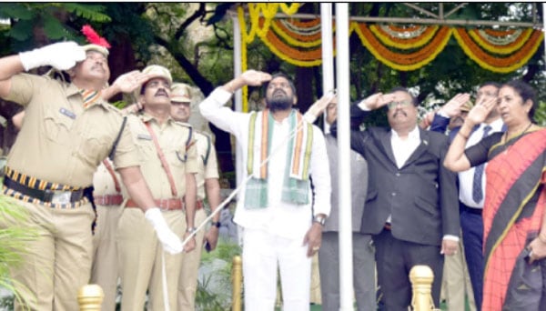 نظام آباد :17؍ ستمبر (سیاست ڈسٹرکٹ نیوز)یوم انضمام کے موقع پر آج نظام آباد کلکٹریٹ پر وزیر عمارات و شوارع مسٹر پرشانت ریڈی نے پرچم کشائی کی اور اس موقع