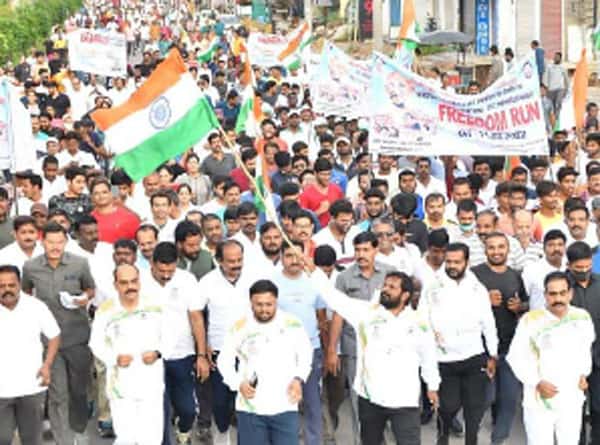 نارائن پیٹ میں فریڈم رن کا انعقاد ، رکن ا سمبلی راجندر ریڈی کا خطاب نارائن پیٹ ۔ بابائے قوم مہاتما گاندھی نے پرامن طریقہ سے جنگ لڑی اور ملک