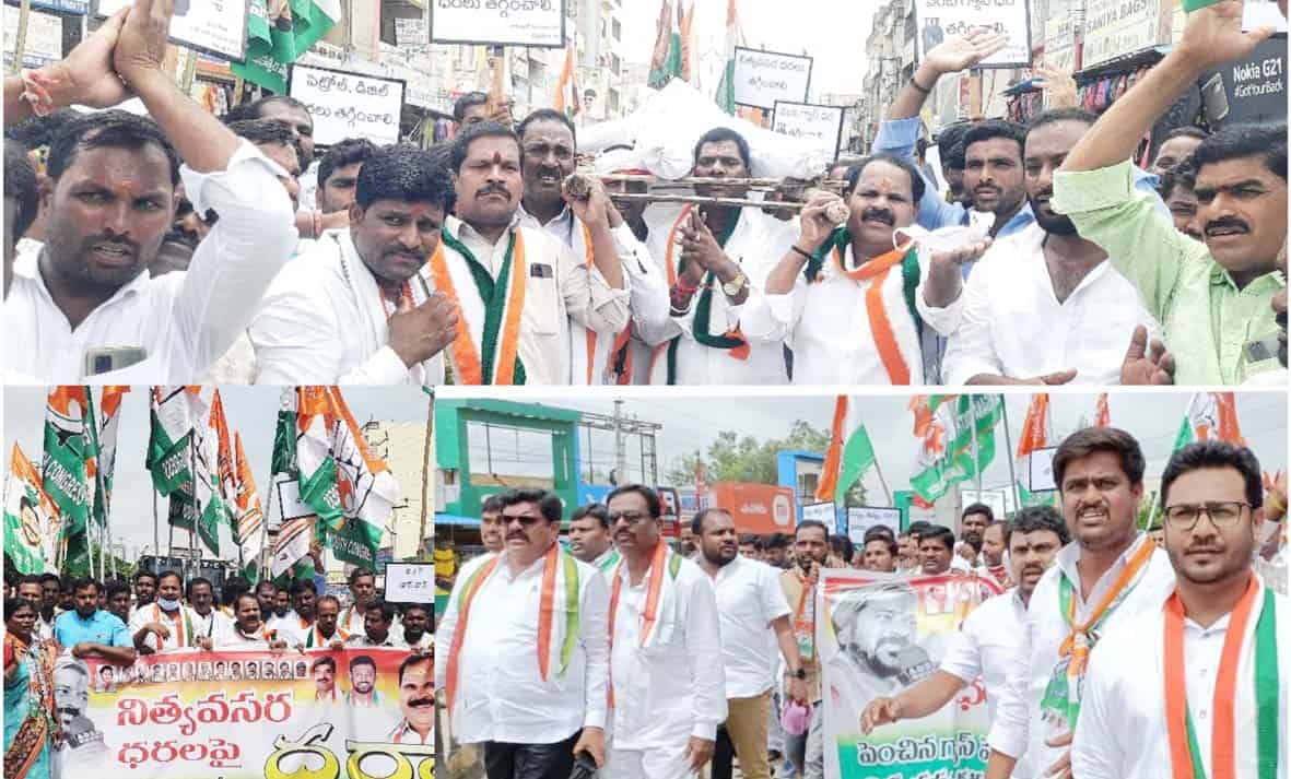 کاماریڈی میں کانگریس کا احتجاج، وزیر اعظم کا پتلہ نذر آتش، سابق ریاستی وزیر محمد علی شبیر کا خطابکاماریڈی ۔ اشیائے ضروریہ کی قیمتوں میں اضافہ کیخلاف آج کل ہند