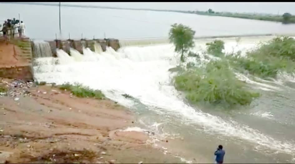 سنگا ریڈی ۔ سنگا ریڈی میں شدید بارش کے باعث ملکا پور تالاب تین سال بعد لبریز ہو چکا ہے 12 مواضعات اور تین ہزار ایکر اراضی کو سیراب ہوگا
