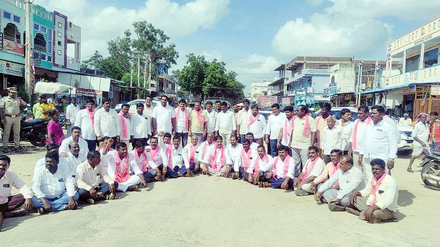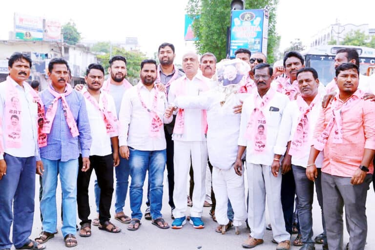 جگتیال : جگتیال ضلع ٹی آر یس پارٹی کی اپیل پر تحصیل چوراہے پر رکن اسمبلی یم سنجے کمار کی قیادت میں ضلع پریشد چیرمین داوا وسنتا ، بلدیہ چیرمین