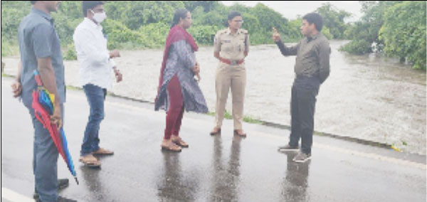 جگتیال:جگتیال میں گذشتہ رات سے جاری تیز بارش کا جائزہ لینے ضلع کلکٹر جی روی، آرڈی او مادھوری، ایس پی سندھو شرما نے مختلف علاقوں کا دورہ کیا اور عوام