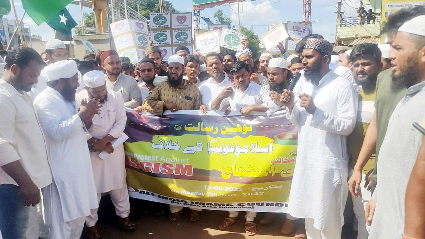 بیدر: ہمناآباد میں گستاخانِ رسول ﷺ اور گستاخِ خواجہ اجمیری ؒکے خلاف احتجاج کرتے ہوئے ایک کل جماعتی ریلی13؍جون کو آل انڈیا امامس کونسل کی نگرانی میں نکالی گئی جو