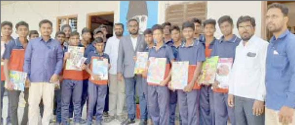 نارائن پیٹ ۔ نارائن پیٹ کے اقلیتی اقامتی اسکول میں آج جماعت دہم کے طلباء کو پرنسپل محمد فرید کے ہاتھوں امتحانی پیاڈ و دیگر اشیاء جامیٹری باکس ، قلم