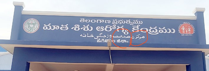 جگتیال میں قائم کردہ زچہ بچہ ہاسپٹل پر تحریر کردہ نام میں اردو کا جنازہ نکال دیا گیا۔ اردو ریاست کی دوسری سرکاری زبان ہونے کے باوجود اردو کے ساتھ