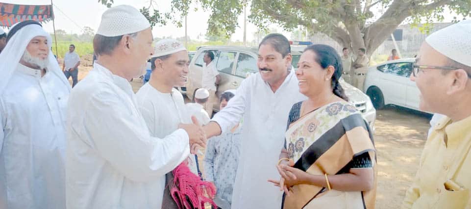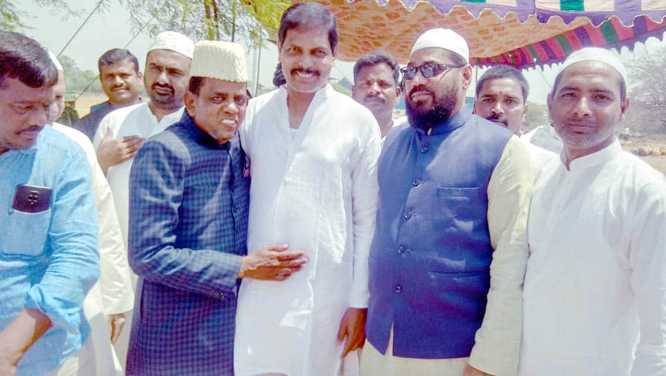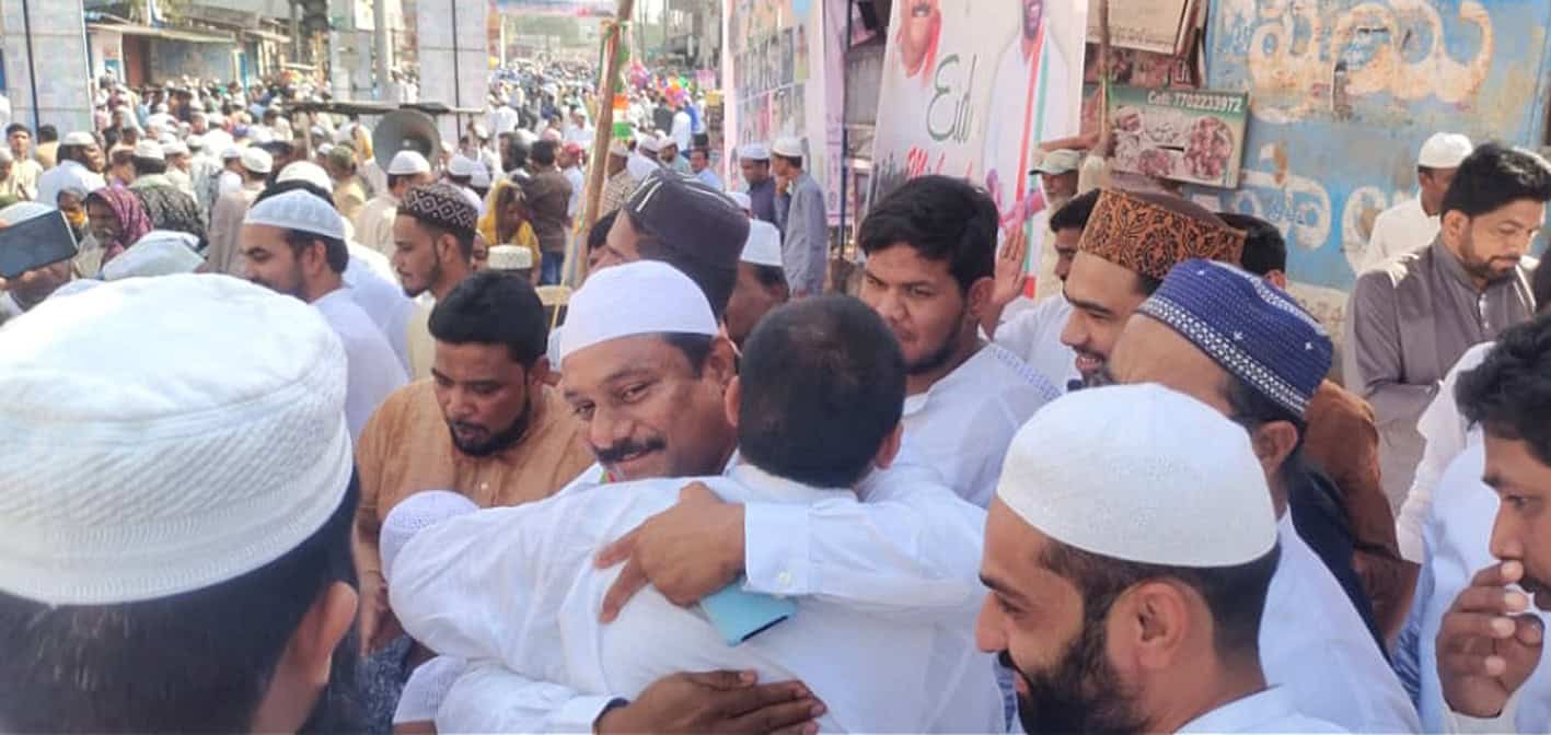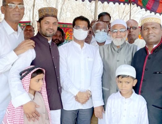 یلاریڈی : رکن اسمبلی سریندر نے منڈل گندھاری کے علاقہ گنڈی ویٹ میں عیدگاہ پر تمام مسلمانوں کے ساتھ نماز عیدالفطر ادا کرتے ہوئے مسلمانوں کو عید کی مبارکباد دی