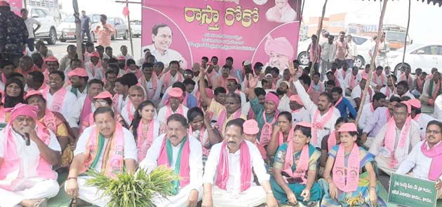 سنگاریڈی میں قومی شاہراہ پر زبردست احتجاجی مظاہرہ، ٹریفک متاثر ، مختلف قائدین کا خطاب سنگاریڈی:مرکزی حکومت کی جانب سے تلنگانہ کے کسانوں سے دھان خریدنے کا مطالبہ کرتے ہوے