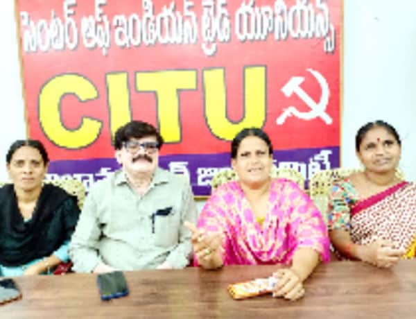 نظام آباد۔ سی آئی ٹی یو کے ضلع صدر رام موہن رائو ، سکریٹری نورجہاں نے آج سی آئی ٹی یو آفس میں صحافیو ں سے بات چیت کرتے ہوئے