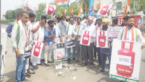 نظام آباد ـ:پٹرول ، ڈیزل اور پکوان گیس کی قیمتوں میں اضافہ کیخلاف آج کانگریس پارٹی کی جانب سے دھرنا چوک پر دھرنا دیتے ہوئے وزیر اعظم نریندر مودی کے
