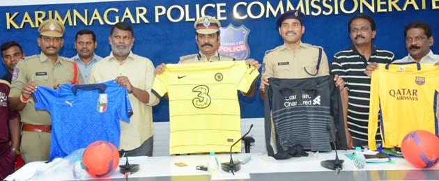 محکمہ پولیس کی جانب سے کھلاڑیوں میں مفت ٹی شرٹس کی تقسیم ، کمشنر وی ستیہ نارائنا کی پریس کانفرنس کریم نگر ۔ محکمہ پولیس کریم نگر کی جانب سے