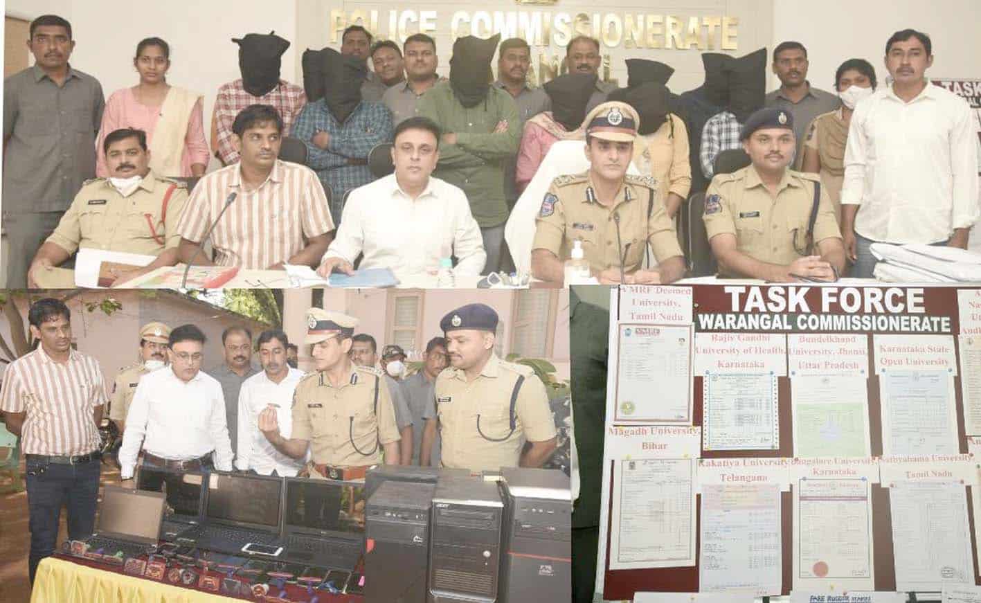 ملک کے مشہور یونیورسٹی کے جعلی اسناد اور دیگر اشیاء ضبط ،پولیس کمشنر ڈاکٹر ترون جوشی کی پریس کانفرنس ورنگل ۔پولیس کمشنر ورنگل ڈاکٹر ترون جوشی نے کہاکہ ملک کے