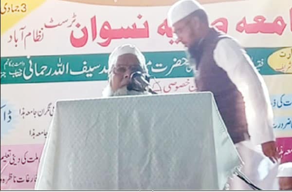 مدرسہ صفیہ نسوان نظام آباد کا جلسہ تقسیم اسناد، مولانا خالد سیف اللہ رحمانی و دیگر کا خطاب نظام آباد :مولانا غلام رسول قاسمی استاذ الحدیث جامعہ صفیہ نسوان نے
