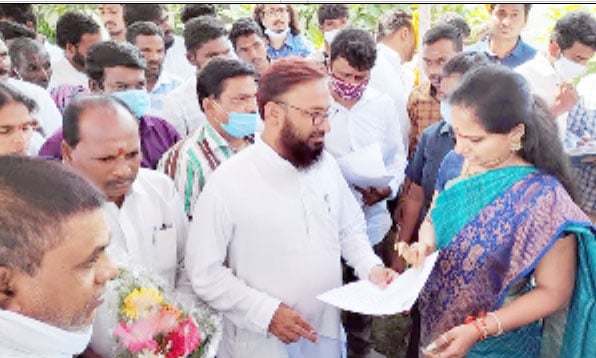 نظام آباد میں ٹی آر ایس قائد سمیر احمد کی ایم ایل سی کویتا کو یادداشت کی حوالگی نظام آباد ۔ سمیر احمد ریاستی قائد ٹی آرایس پارٹی نے ایم