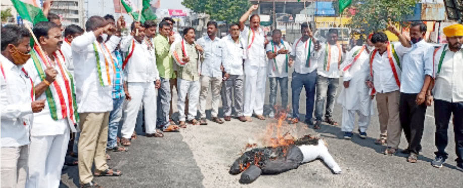 کریم نگر میں کانگریس کا احتجاج، چیف منسٹر کا پتلا نذر آتش، لاٹھی چارج کی مذمت کریم نگر۔ سٹی کانگریس کریم نگر کے زیر اہتمام صدر سٹی کانگریس کومٹی ریڈی
