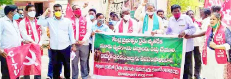 زرعی سیاہ قوانین کی منسوخی اور اقل ترین امداد ی قیمتوں کی ادائیگی کا مطالبہ نظام آباد :مرکزی سیاہ قانون کے خلاف مطالبات کرتے ہوئے بائیں بازو کی جماعتیں کسان
