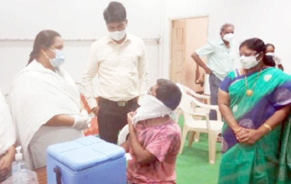 محبوب نگر۔ مستقر محبوب نگر کے گورنمنٹ بوائز جونیر کالج گراؤنڈ میں ہائی رِسک پرسنس کیلئے کوویڈ ویکسین اسپیشل ڈرائیو کا آج دوپہر ریاستی وزیر وی سرینواس گوڑ نے افتتاح