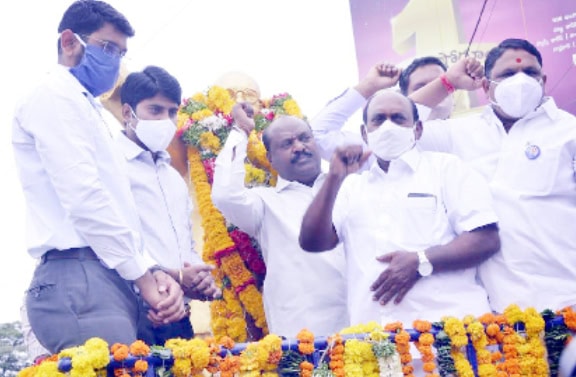 کریم نگر میں شادی مبارک کے چیکس اور ٹیلرنگ اسناد کی تقسیم، ریاستی وزیر گنگولا کملاکر کا خطاب کریم نگر :کلکٹریٹ آڈیٹوریم میں کلیانہ لکشمی و شادی مبارک چیکس کی