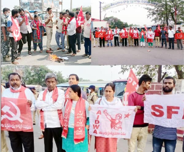 کانگریس، تلگودیشم اور کمیونسٹ پارٹی اراکین و قائدین کی ریالی عادل آباد۔ مرکزی حکومت کی جانب سے کسانوں پر عائد کردہ جدید سیاہ قانون کی مخالفت کرتے ہوئے مختلف سیاسی