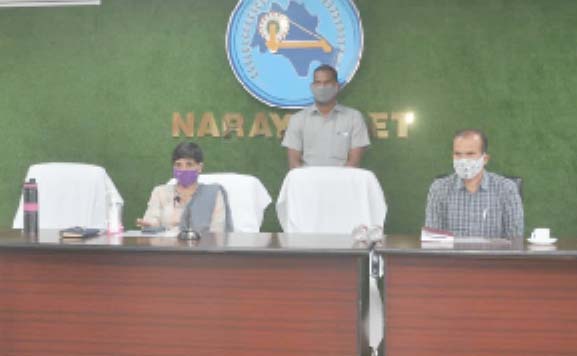 نارائن پیٹ میں عہدیداروں کے ساتھ اجلاس سے کلکٹر ہری چندنا کا خطاب نارائن پیٹ ۔ ضلع کلکٹر نارائن پیٹ شریمتی ہری چندنا آئی اے ایس نے ضلع کے عوام