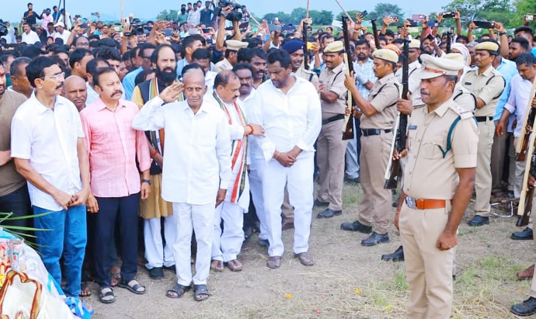سوریاپیٹ:4؍اکتوبر (سیاست ڈسٹرکٹ نیوز) سابق وزیر وسابق رکن اسمبلی سینئر کانگریس قائد آر دامودھر ریڈی کی آخری رسومات مکمل سرکاری اعزاز کے ساتھ تنگاترتی ضلع سوریاپیٹ میں ادا کی گئی۔