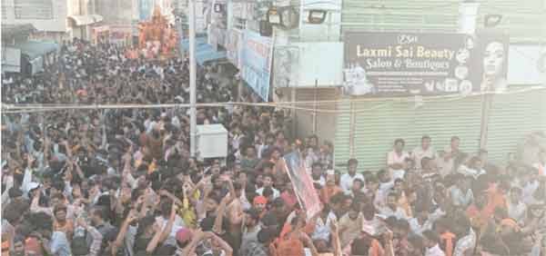 وسیع صیانتی انتظامات کے باوجود اشتعال انگیز نعرے بازی اور رقصبھینسہ 13/اکتوبر (سیاست ڈسٹرکٹ نیوز) بھینسہ میں درگادیوی نمرجن جلوس کا آغاز پْرانا بازار علاقہ اور آئی بی گیسٹ کے