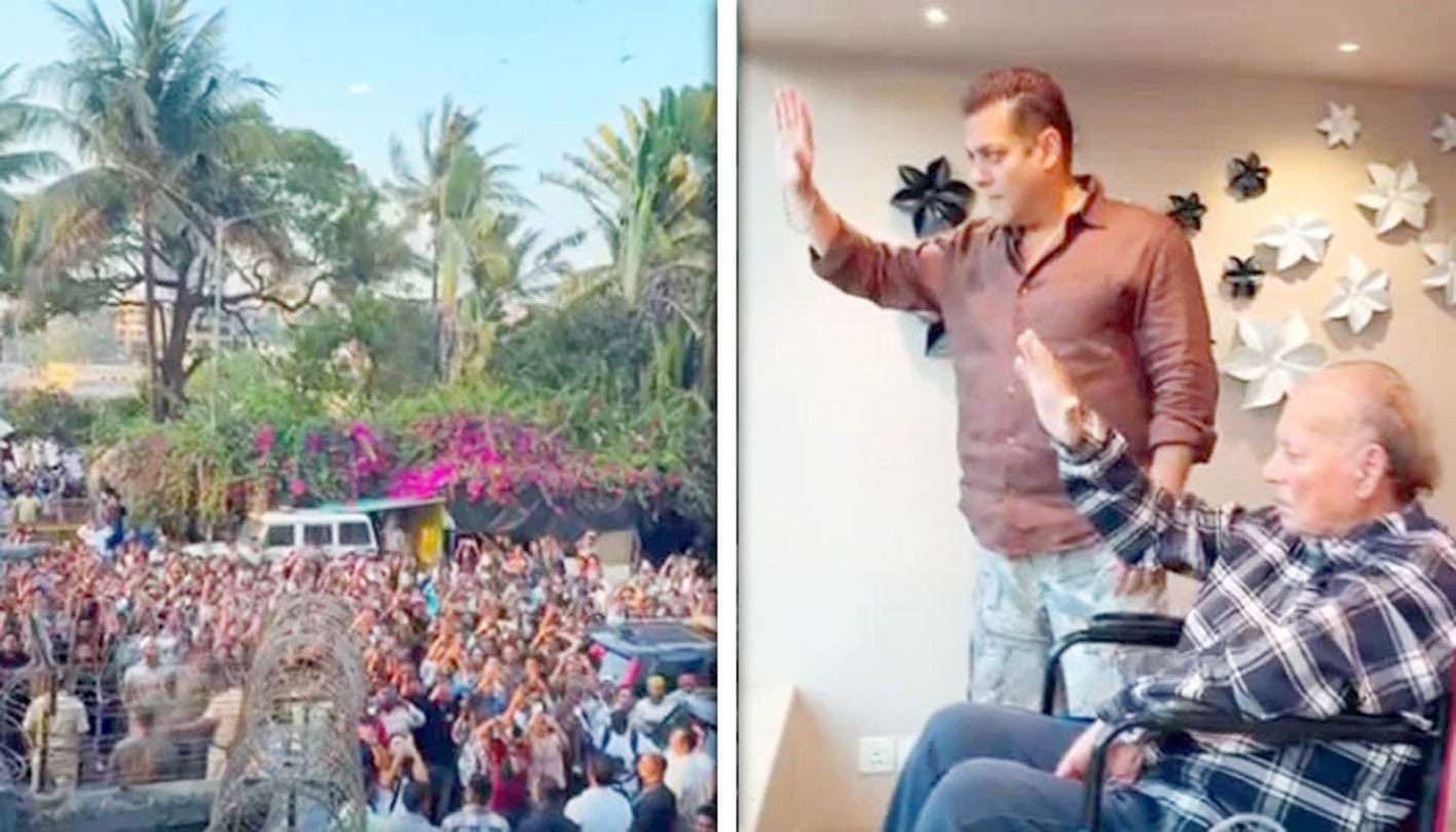 ممبئی ۔ 22؍مارچ ( ایجنسیز )بالی ووڈ کے ’بھائی جان‘ سلمان خان عید کے موقع پر اپنی رہائش گاہ کے باہر جمع ہونے والے مداحوں سے روایتی انداز میں ملے۔
